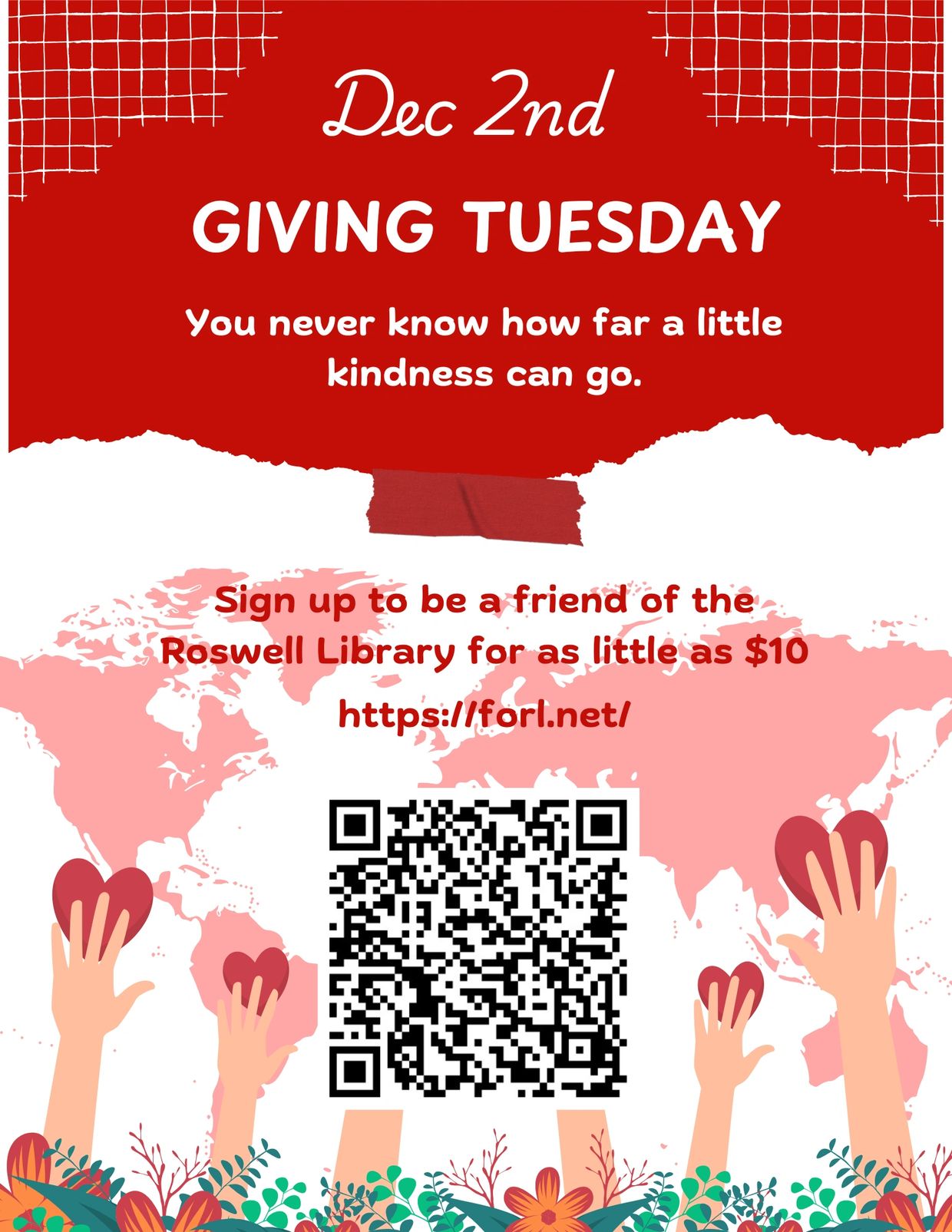 Annual sponsorship of the Friends of the Roswell Library may be made in person at the bookstore, mailed to the library, or click below to support online with a credit card.